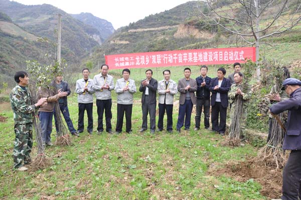 10月23日,長城電工與隴南市武都區(qū)龍壩鄉(xiāng)政府在龍壩鄉(xiāng)張莊村舉行“千畝蘋果園基地”建設(shè)項(xiàng)目栽植儀式,標(biāo)志著長城電工“千畝蘋果園基地”項(xiàng)目一期工程300畝栽植果苗工作正式啟動(dòng)。