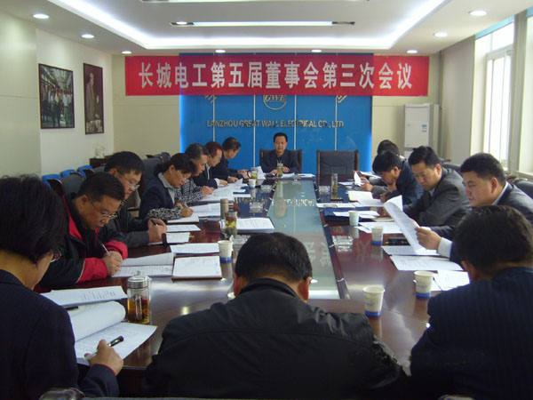 2012年10月25上午,由長(zhǎng)城電工董事長(zhǎng)楊林主持,蘭州長(zhǎng)城電工股份有限公司召開第五屆董事會(huì)第三次會(huì)議。會(huì)議審議并通過了《長(zhǎng)城電工2012年三季度報(bào)告》、《公司關(guān)于建立<內(nèi)部控制手冊(cè)>及相關(guān)管理制度的議案》、《公司關(guān)于建立<內(nèi)部控制評(píng)價(jià)手冊(cè)>及<內(nèi)部控制自我評(píng)價(jià)方案>的議案》、《公司關(guān)于聘請(qǐng)2012年度內(nèi)控審計(jì)機(jī)構(gòu)的議案》等議案。