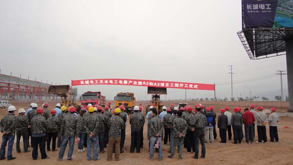 2013年5月15日,長(zhǎng)城電工天水電工電器產(chǎn)業(yè)園餐飲文化中心(A2)和職工宿舍樓(A3)項(xiàng)目工程開(kāi)工儀式在長(zhǎng)城電工天水電工電器產(chǎn)業(yè)園舉行。長(zhǎng)城電工總經(jīng)理張希泰參加并做重要講話。