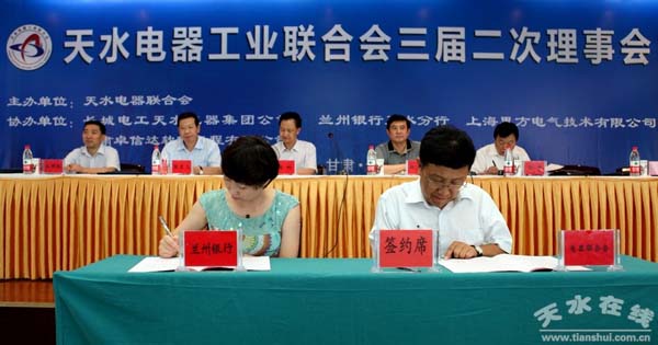 會(huì)上,市領(lǐng)導(dǎo)親自為天水天辰電器有限公司等12戶新入會(huì)的理事單位頒發(fā)了天水電器工業(yè)聯(lián)合會(huì)理事證書(shū)。蘭州銀行天水分行行長(zhǎng)助理董麗麗、天水電器工業(yè)聯(lián)合會(huì)秘書(shū)長(zhǎng)韋利民代表銀企雙方現(xiàn)場(chǎng)簽署了金融服務(wù)合作意向書(shū)。會(huì)議還創(chuàng)新了辦會(huì)模式,安排蘭州銀行天水分行、上海思方電氣技術(shù)有限公司、甘肅卓信達(dá)軟件工程有限公司、長(zhǎng)城電工物流有限公司、天水力天軟件開(kāi)發(fā)有限責(zé)任公司及天水經(jīng)濟(jì)技術(shù)開(kāi)發(fā)區(qū)招商局等六家單位就金融服務(wù)項(xiàng)目、企業(yè)信息化建設(shè)、智能電網(wǎng)、電氣工程軟件應(yīng)用和天水社棠產(chǎn)業(yè)孵化園招商等內(nèi)容進(jìn)行了大會(huì)交流互動(dòng),收到了良好效果。