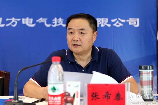 (聯(lián)合會(huì)副會(huì)長(zhǎng)、蘭州長(zhǎng)城電工股份有限公司總經(jīng)理張希泰主持會(huì)議 )
